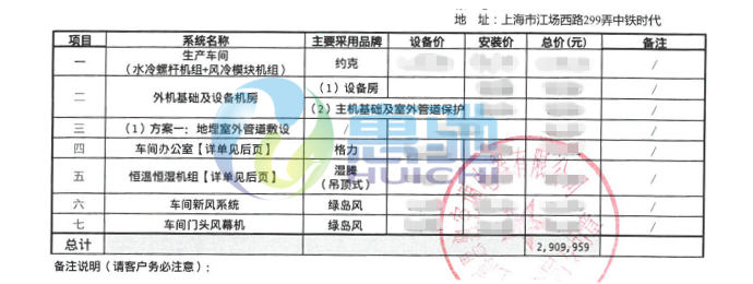 車(chē)間舒適節(jié)能系統(tǒng)配置表